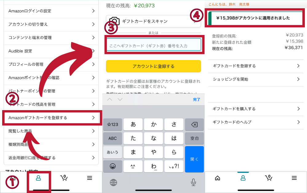 - Amazonアプリを起動しアプリ下の「人のマーク」を選択