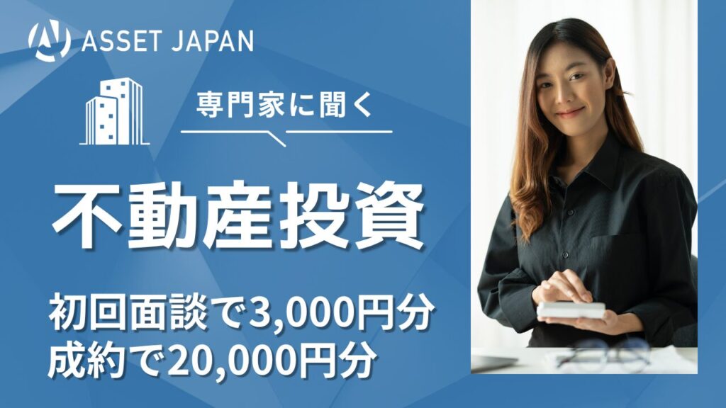 | ASSET JAPAN | 不動産投資 | 面談3,000円分 成約20,000円分 | 年収500万円以上 面談 | 詳細を見る | |