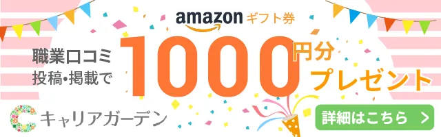 | キャリアガーデン | 口コミサイト | アマギフ1,000円分 | 投稿 | 詳細を見る | |