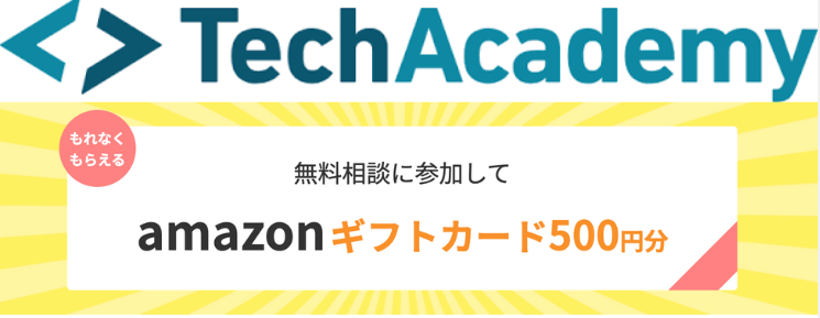 | TechAcadmey | プログラミング スクール面談 | 500円分のアマギフ | 面談 | 詳細を見る | |
