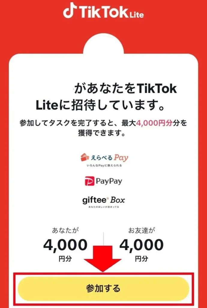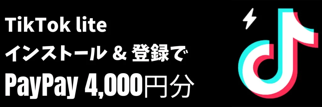 | TikTok lite | インストール | PyaPay 4,000円分 | インストール&登録 | 詳細を見る | |