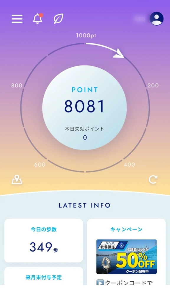 仕事が在宅のため、1日の移動距離は500mもないため広告視聴でポイントを獲得しています。
