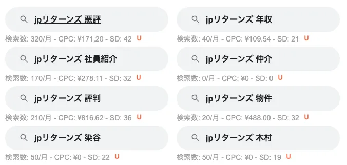 Googleで「JPリターンズ」で検索すると関連キーワードに「悪評」とのキーワードが出てきます。