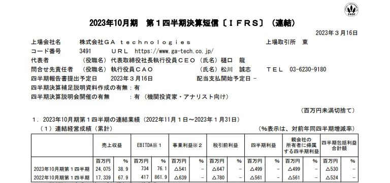 GAテクノロージズは東証一部グロースに上場している企業のため経営は厳密に管理されています。