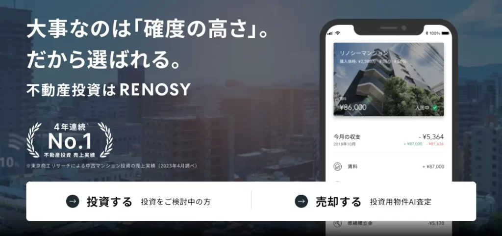 RENOSYは投資初心者でも気軽に始められる不動産投資サービスです。