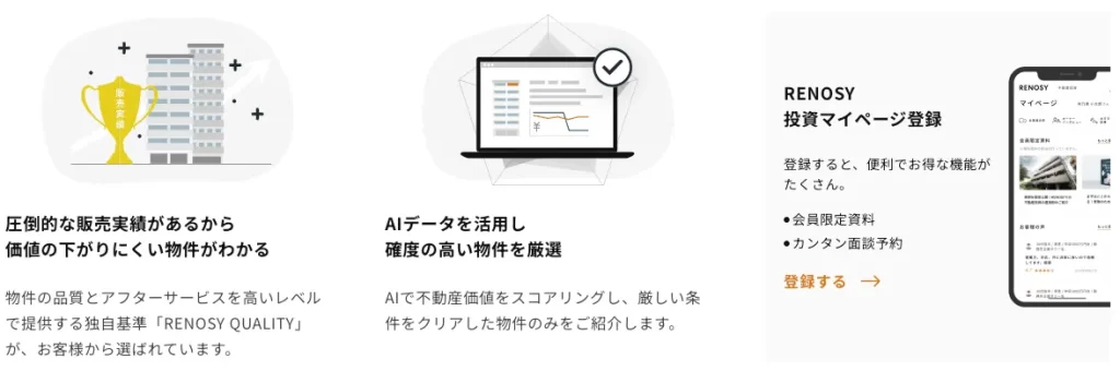 RENOSYはコストを抑えて不動産投資を開始できるメリットがあります。