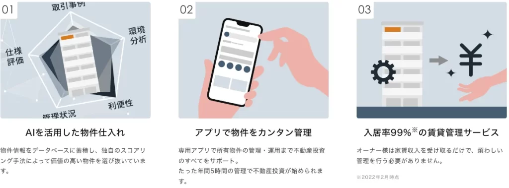 RENOSYは投資家に資産価値のある物件を販売して、購入した物件を賃貸として運用します。