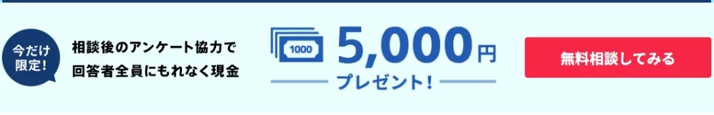 無料相談会に参加された方で相談会後にアンケートに回答すると「もれなく5,000円の現金をプレゼント」