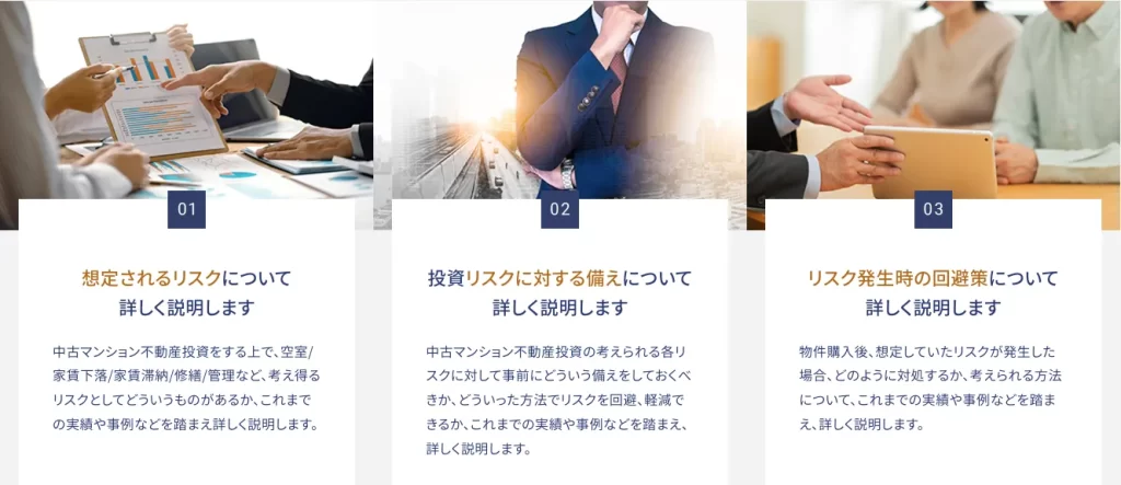売って終わりではなく、顧客に不動産投資のリスクを理解してもらった上で投資物件を紹介していくスタンスです。